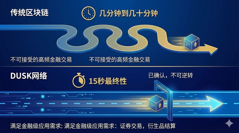 Répondre aux besoins des applications financières. Le temps de confirmation des blockchains traditionnelles varie de quelques minutes à plusieurs dizaines de minutes, ce qui est inacceptable pour les transactions financières à haute fréquence. La finalité de 15 secondes de DUSK garantit que les transactions, une fois confirmées, ne peuvent être inversées, satisfaisant ainsi les exigences des applications financières telles que les transactions de valeurs mobilières et le règlement des dérivés. Cet indicateur de performance n'est pas une simple compétition numérique, mais vise à répondre aux besoins des scénarios commerciaux réels.