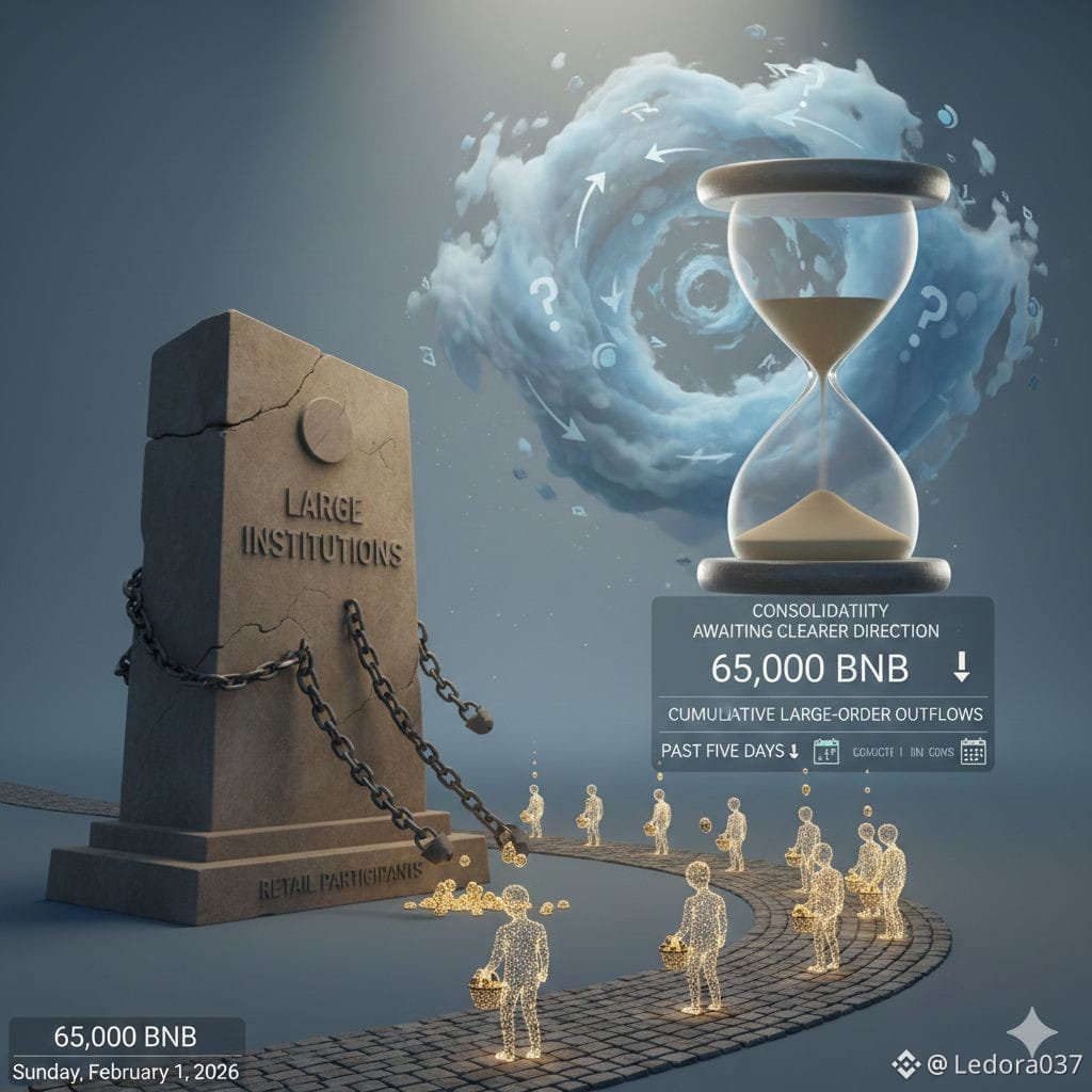 Large market participants have recently reduced exposure, reflecting cautious positioning amid macro uncertainty. Retail participants have shown modest buying interest, indicating a phase of gradual accumulation rather than panic selling. Over the past five days, cumulative large-order outflows have amounted to approximately 65,000 BNB. These flows suggest the market is consolidating and awaiting clearer directional signals.