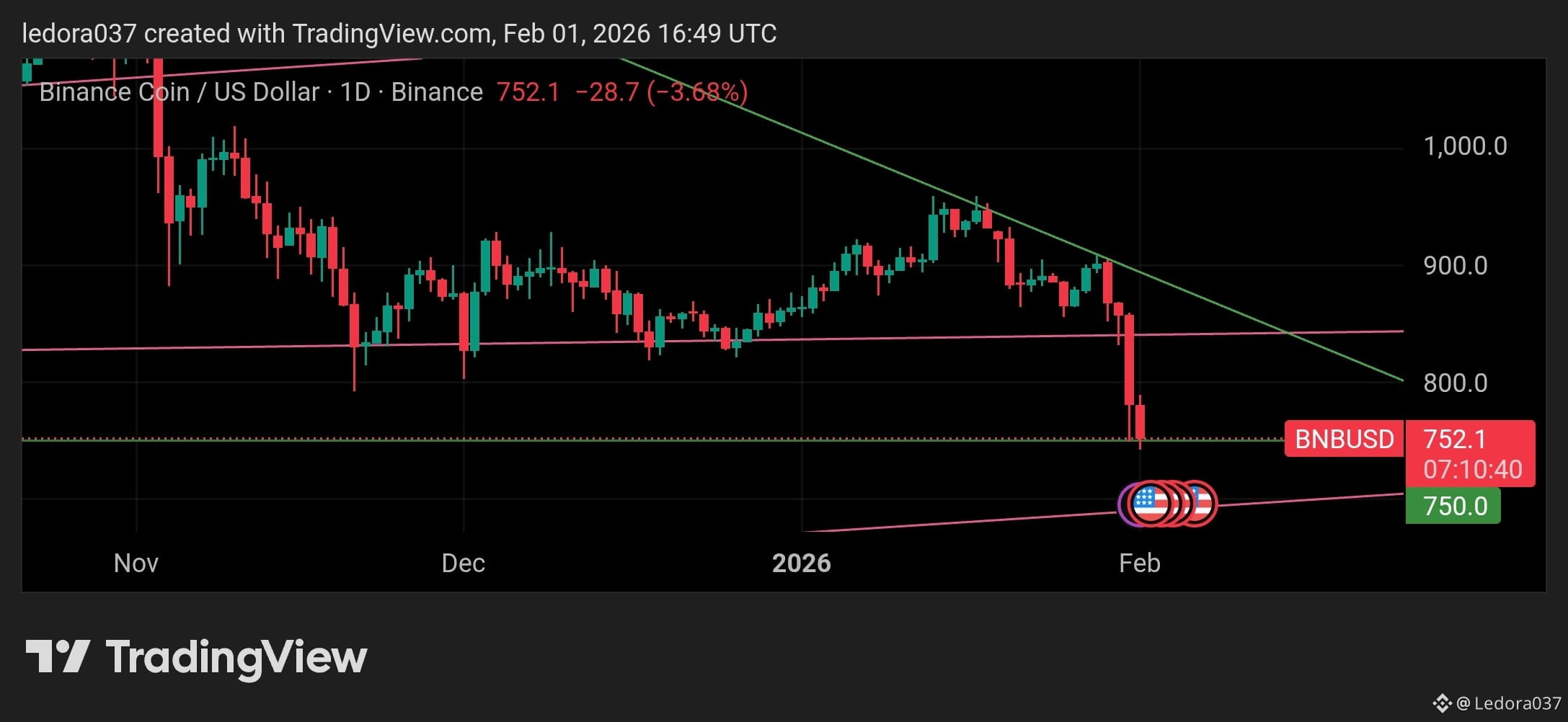 If global risk sentiment improves, major cryptocurrencies stabilize, and on-chain activity within the Binance ecosystem increases, BNB could target the $950 - $1,050 range over the medium term. Alternatively, consolidation between $720 and $820 may continue, reflecting a range-bound market environment. Prolonged macro uncertainty or continued large-order outflows could test the $680 - $700 support zone before longer-term stabilization occurs.