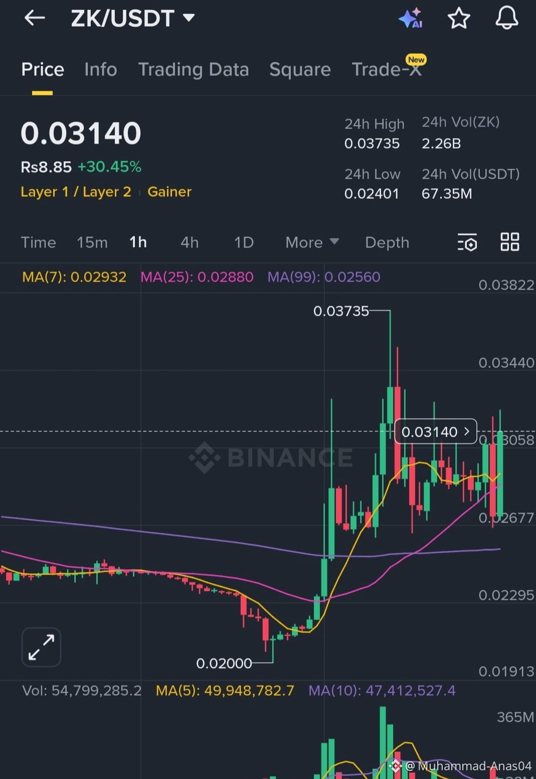 Looking at the chart, the price has successfully broken above the MA(7) and MA(25). If ZK can sustain a daily close above the $0.031 resistance, the next target for the bulls could be the previous high near $0.037.