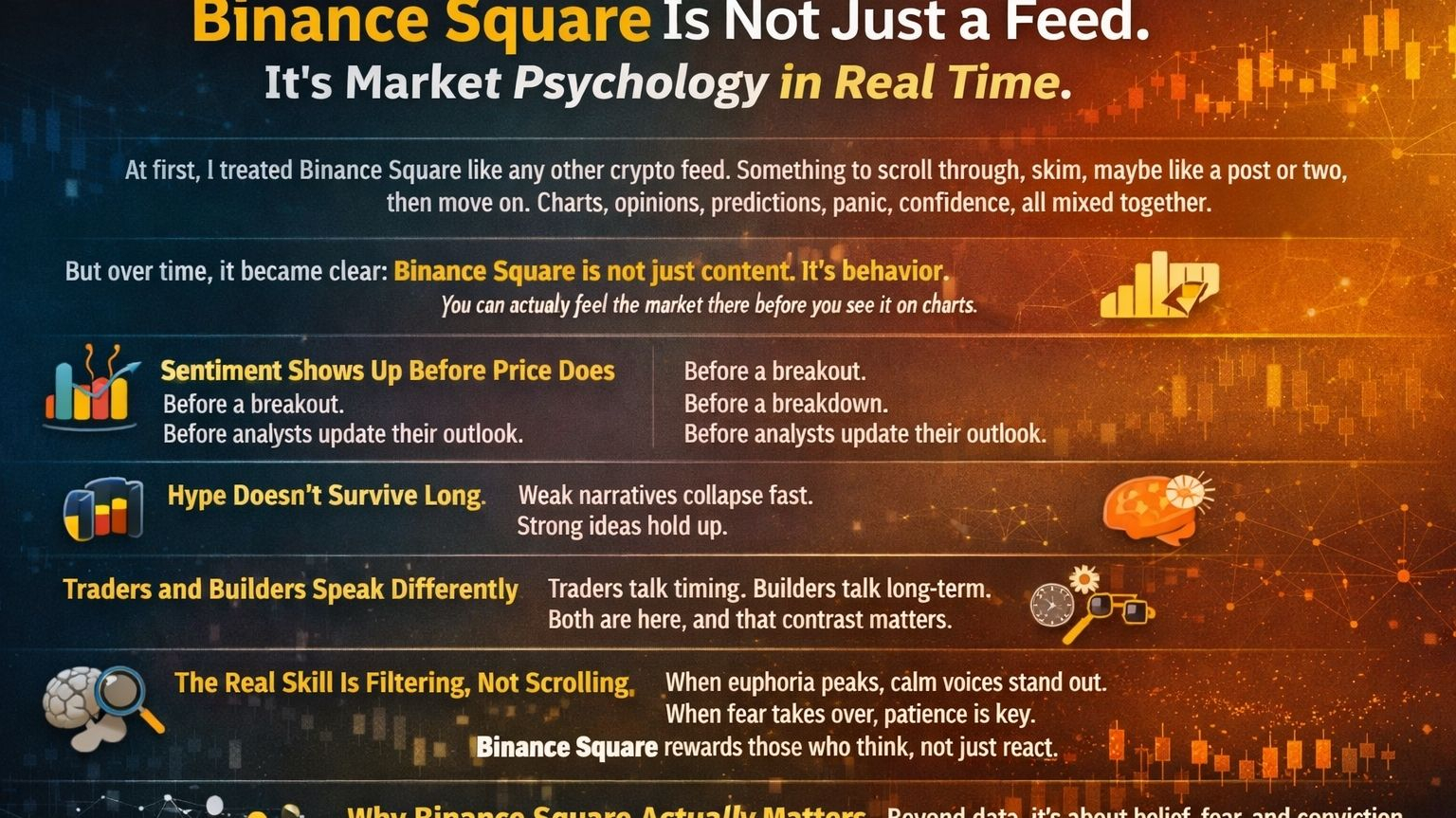 At first, I treated Binance Square like any other crypto feed. Something to scroll through, skim, maybe like a post or two, then move on. Charts, opinions, predictions, panic, confidence, all mixed together in one endless stream.