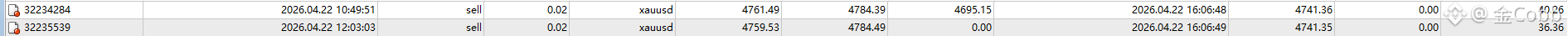 下午进的两单 0.02空,首仓4761 一直在震荡 盈利40刀后回踩到成本线 补仓0.02继续看空,具体思路在我上一个帖子。 价格达到4741附近k线形态不对劲,我赶紧跑路,于是在插针前成功逃离,80u收益到手 #XAU