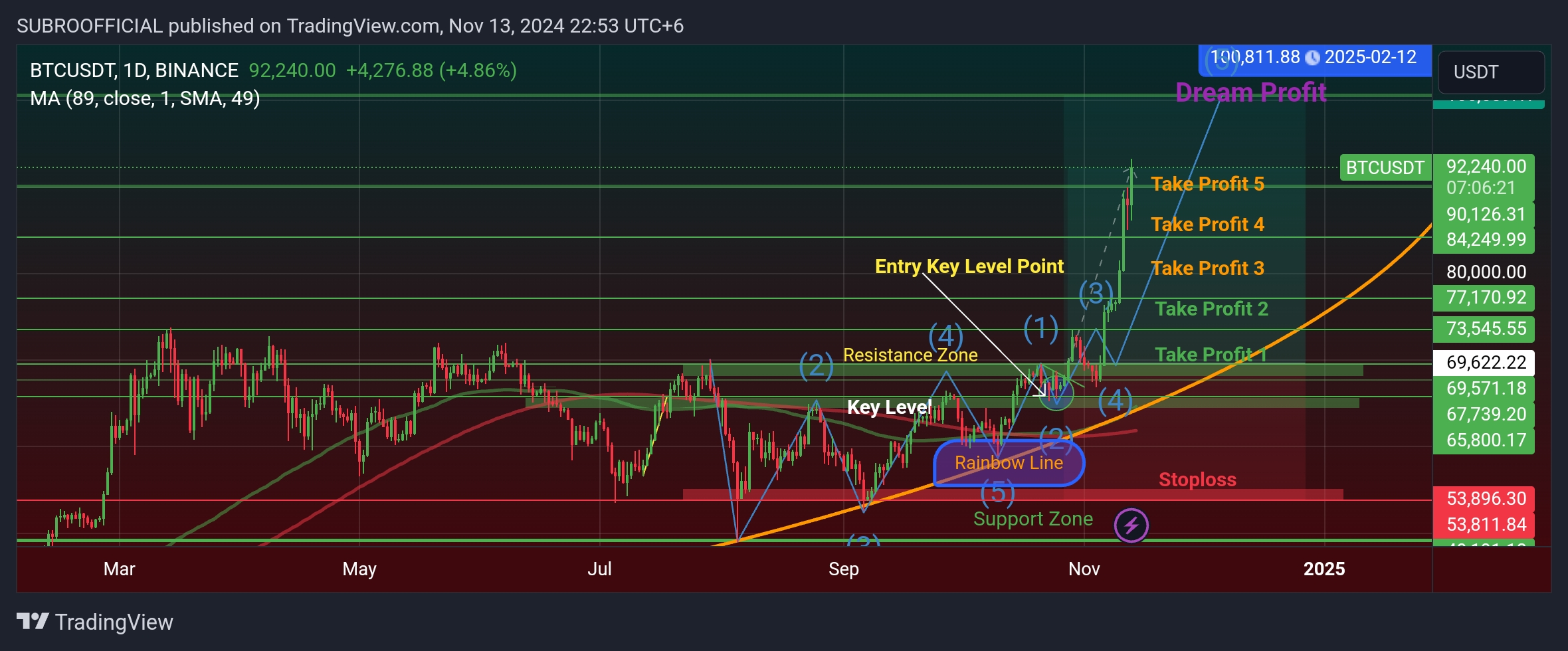 Bitcoin baru saja mencapai $93.000, dan kini tinggal $7.000 lagi dari target $100.000 yang telah lama ditunggu-tunggu, yang telah diprediksi oleh banyak orang di dunia kripto untuk akhir tahun.