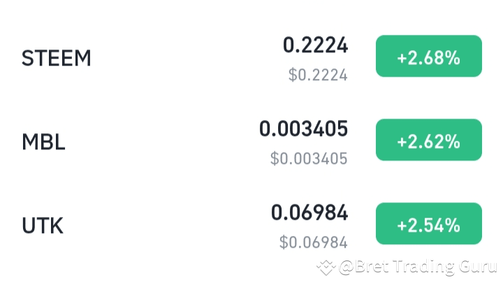 Bahkan dengan peningkatan persentase yang lebih kecil, $STEEM , $MBL , dan $UTK