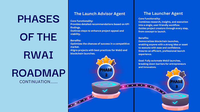 Melalui peta jalan yang terus berkembang, RWAI menambahkan kemampuan baru dalam fase-fase, bertujuan untuk sepenuhnya mengotomatiskan perjalanan dari ide hingga peluncuran blockchain yang sukses. Inovasi ini ditetapkan untuk memberdayakan pengusaha, investor, dan pemangku kepentingan dengan alat untuk mengurangi risiko, mempercepat waktu ke pasar, dan memastikan kesuksesan jangka panjang dalam ekosistem Web3.