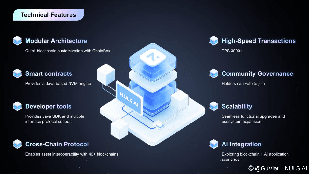 - Dengan cepat membuat kode kontrak pintar (Smart contracts) menggunakan bahasa Java dengan NVM (NULS Virtual Machine).