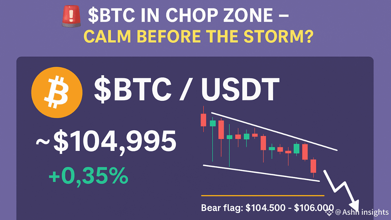 Bitcoin ($BTC ) berada dalam fase pendinginan setelah penurunan agresif dari di atas $108K. Saat ini, harga melayang di dekat $104,995, pulih sedikit—tetapi kita melihat tanda-tanda ketidakpastian yang jelas di seluruh papan. Berikut yang saya pantau 👇