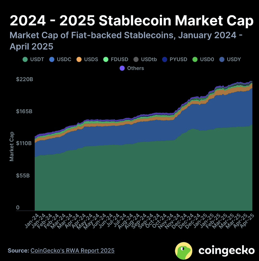 1. Kapitalisasi Pasar Stablecoin Berbasis Fiat Meningkat sebesar +$97 miliar Antara 2024 - 2025, Mengakhiri April di Titik Tertinggi Baru sebesar $224,9 miliar