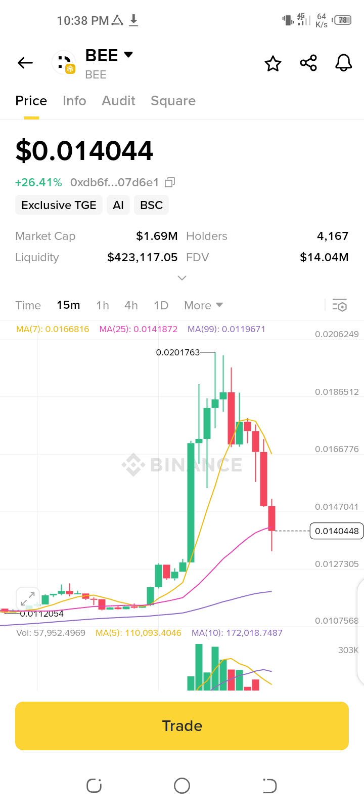 baru saja mendingin setelah mencapai $0.0201, sekarang diperdagangkan pada $0.0140. Tapi jangan tidur pada ini — penurunan ini bisa menjadi pintu masuk emas Anda sebelum reli berikutnya!