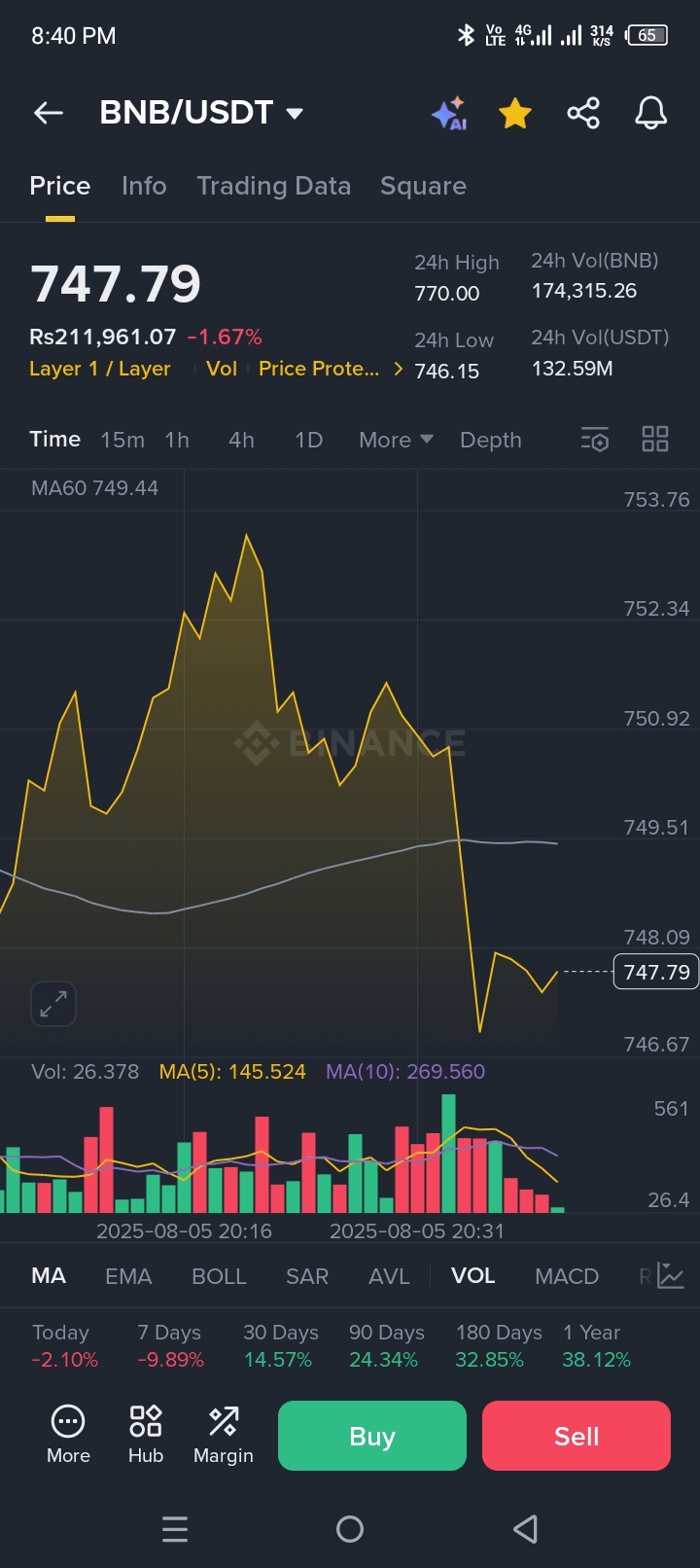 Pada saat grafik ini (5 Agustus 2025, 20:40), Binance Coin ($BNB ) diperdagangkan melawan Tether (USDT) pada:
