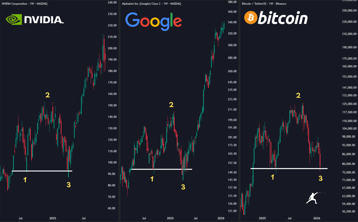 The image above highlights a recurring "Three-Touch" support structure across NVIDIA, Google, and now Bitcoin. If history is any indication, the $65K–$70K zone isn't just a floor; it’s a potential launchpad.
