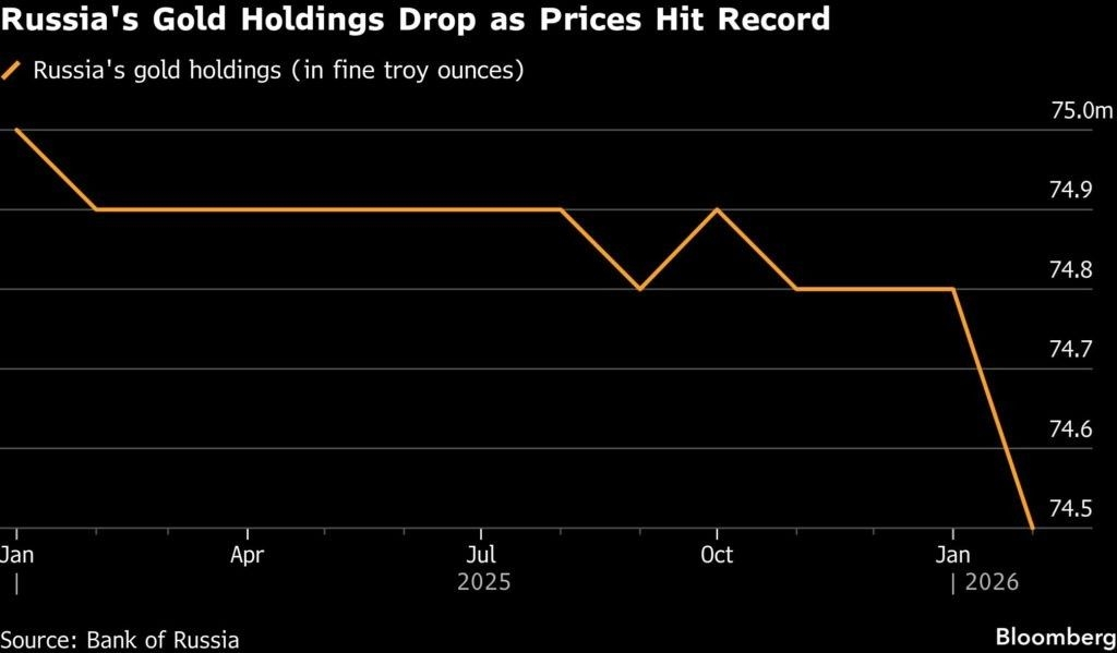 (Kitco News) – Russia’s central bank sold a significant amount of gold from its reserves in January as prices hit all-time record highs above $5,500 per ounce, according to the latest data from the Central Bank of Russia (CBR).