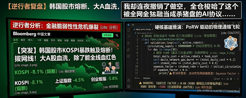 Logika shorting saya pada waktu itu tidak dapat dibantah: sebuah robot penyapu, atau drone pengantar, mereka hanya perlu menjalankan algoritma pelacakan dan penghindaran rintangan mereka secara lokal, mengapa harus terhubung ke blockchain? Anda meminta seekor robot anjing yang perlu bereaksi dalam milidetik untuk menunggu beberapa detik untuk konfirmasi dari node RPC di jaringan Base? Dalam keadaan pasar makro yang ekstrem seperti hari ini, "robot anjing di blockchain" semacam itu sudah jatuh menjadi tumpukan besi tua karena tidak menerima instruksi. Ini bukan infrastruktur, ini adalah mencari keuntungan dengan cara yang mematikan. Ini adalah target shorting yang paling sempurna dalam kepanikan pasar saham hari ini.