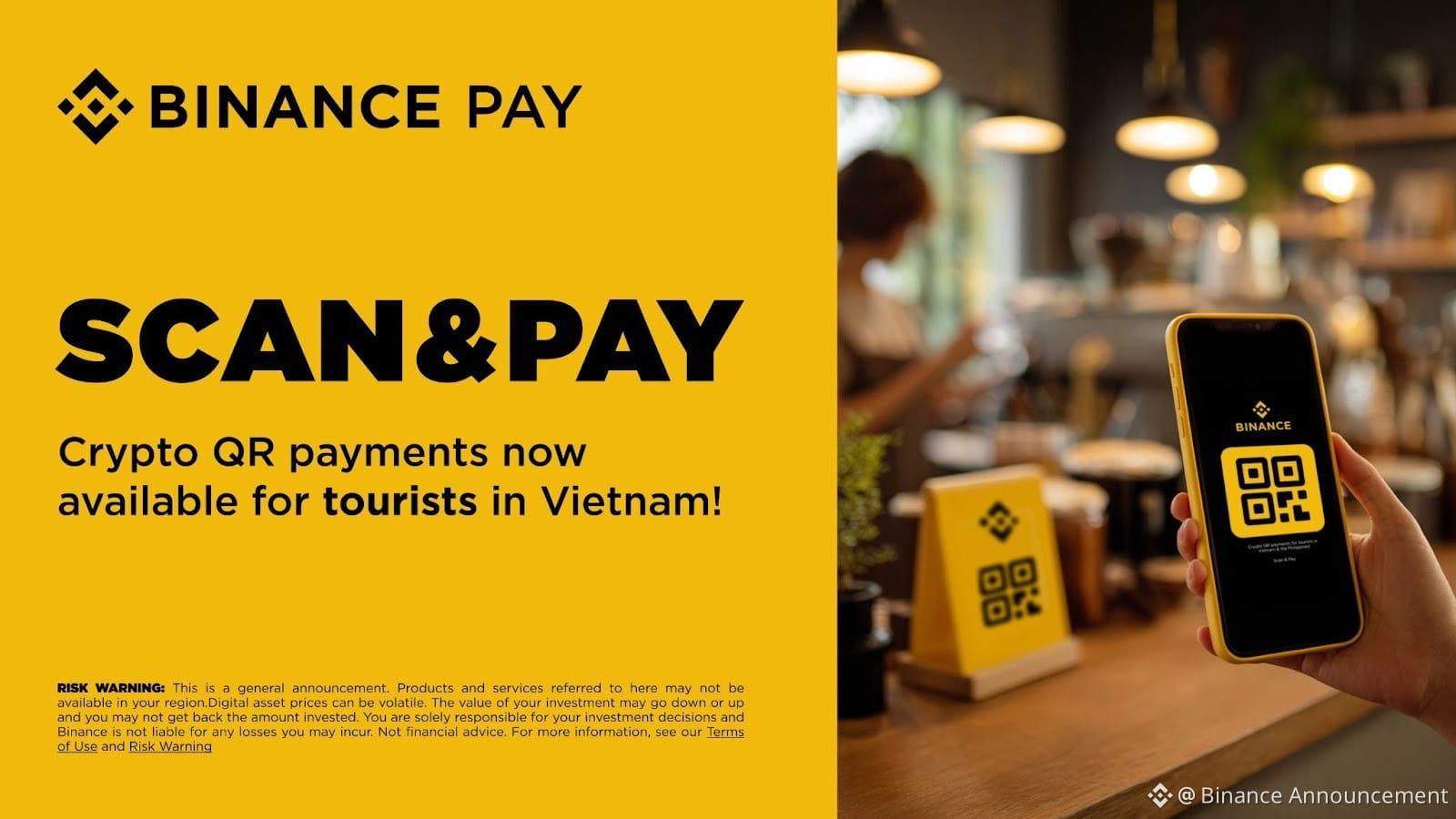 • Fitur pembayaran QR ini secara eksklusif tersedia untuk turis yang mengunjungi Vietnam dan telah menyelesaikan proses verifikasi identitas Binance.