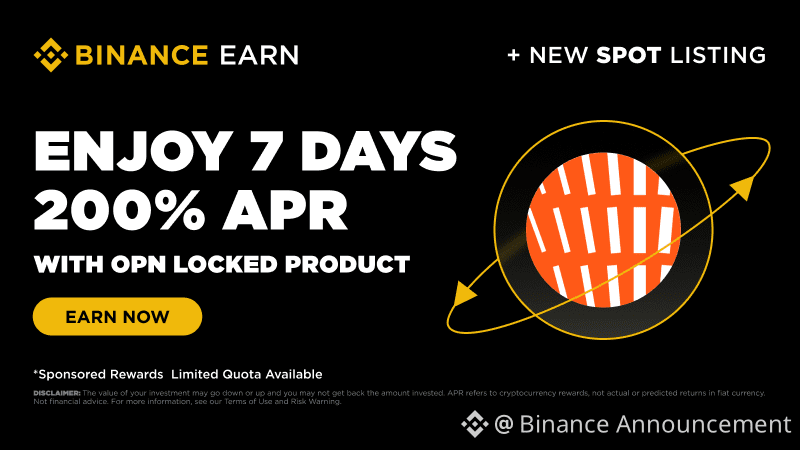 Untuk merayakan listing token terbaru kami untuk Opinion (OPN), Binance Simple Earn dengan senang hati meluncurkan promosi untuk Produk Terkunci Simple Earn OPN. Selama Periode Promosi, pengguna yang memenuhi syarat dapat berlangganan Produk Terkunci OPN dan menikmati reward APR 200% eksklusif selama 7 hari!