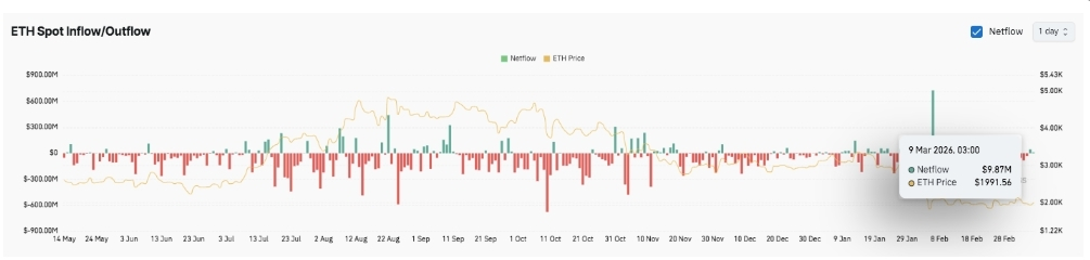 Arus stabil pada akhir tahun dan menjadi kurang volatil. Awal Februari untuk sesaat menandai lonjakan penerimaan, yang mengisyaratkan kembalinya minat. Pada awal Maret, arus ETF menjadi moderat positif, sementara Ethereum tetap sekitar 2 000๐ฒ.