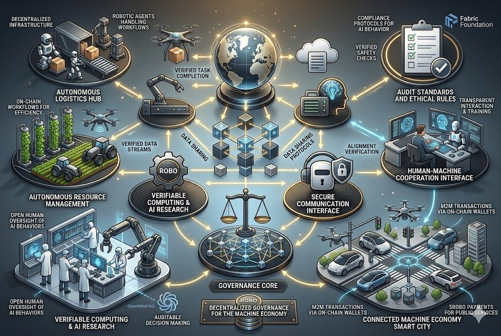 Saat saya melihat lebih dalam ke dalam konsep ini, saya menjadi jelas bahwa Fabric Protocol dirancang sebagai jaringan terbuka global di mana pengembang dan organisasi dapat membangun dan mengelola robot dengan tujuan umum. Proyek ini didukung oleh Yayasan Fabric nirlaba, yang fokus pada membimbing pengembangan ekosistem dan memastikan bahwa teknologi berkembang secara bertanggung jawab. Alih-alih pengembangan robotika yang terjadi di laboratorium terisolasi atau perusahaan swasta, Fabric mendorong lingkungan terbuka dan kolaboratif di mana inovasi dapat tumbuh bersama.