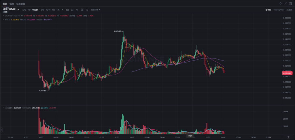 龍蝦起出在 Four.meme 平台發射,當時最低僅約 0.0014 美金,到最高點2026/3/13上線雙連擊後來到最高點 0.027 美金,也就約18倍左右!