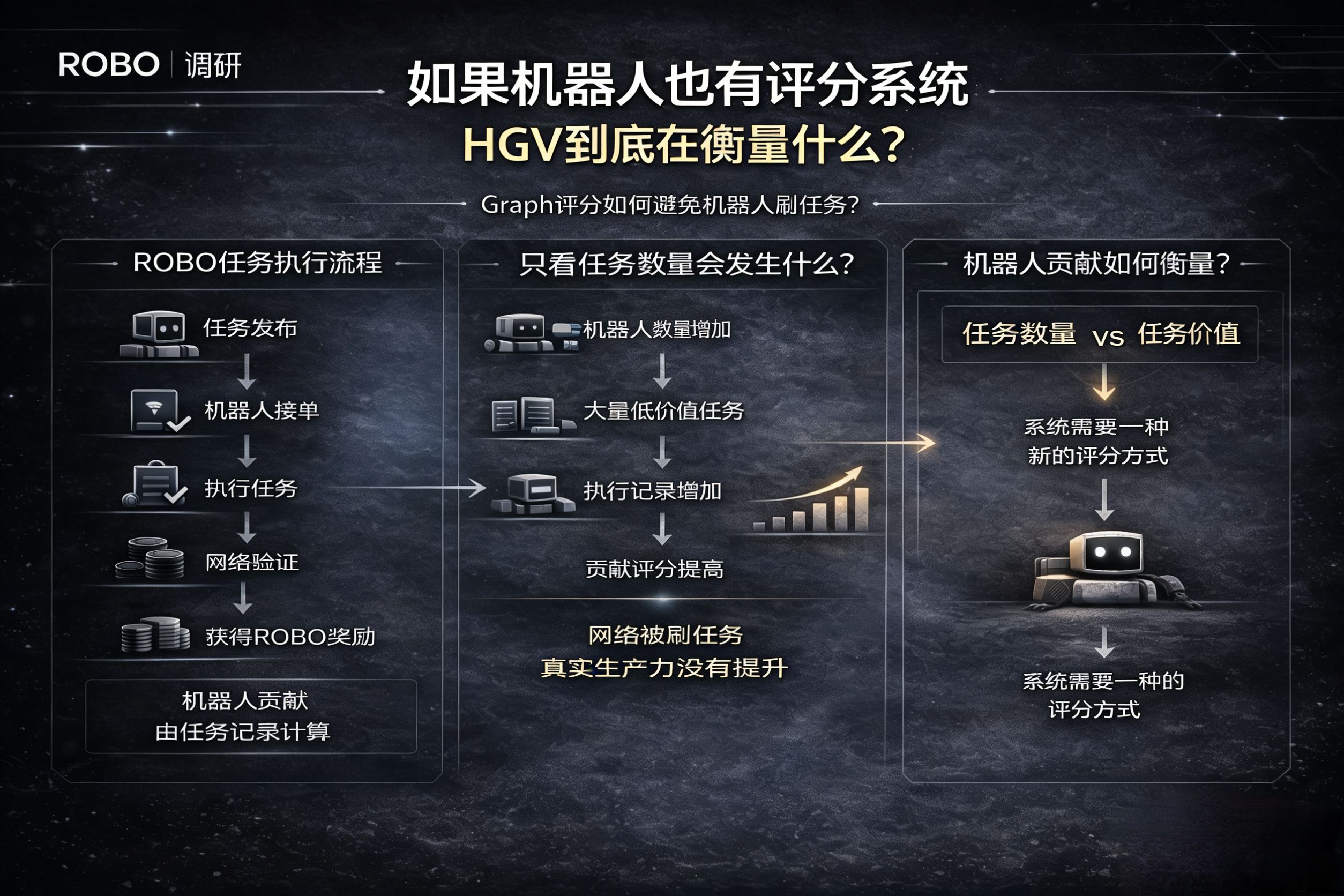 我现在其实还没完全想明白HGV的设计倾向是哪一种,机器人价值到底是由产出决定,还是由网络位置决定。但是如果$ROBO 真的要成为机器人任务网络的核心结算资产,那HGV很可能会成为整个系统最关键的参数之一。