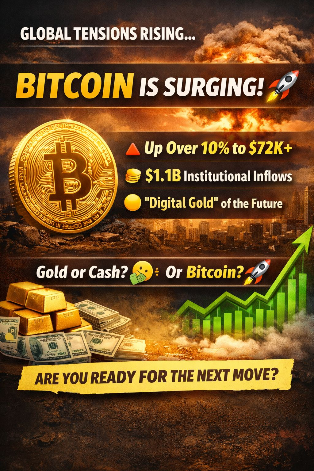 Since the Iran conflict began, Bitcoin has surged over 10%, trading above $72K 📈 — outperforming gold and major stock markets.