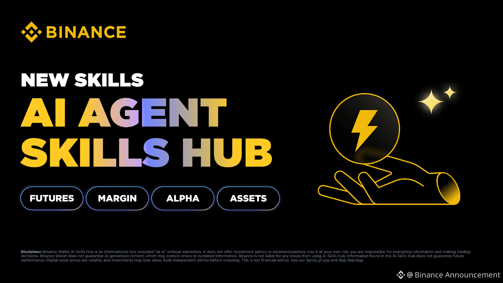 Binance dengan senang hati meluncurkan 4 AI Agent Skills baru, memperluas kemampuan setara Binance ke perdagangan derivatif, Perdagangan Margin, Binance Alpha, dan pengelolaan aset.