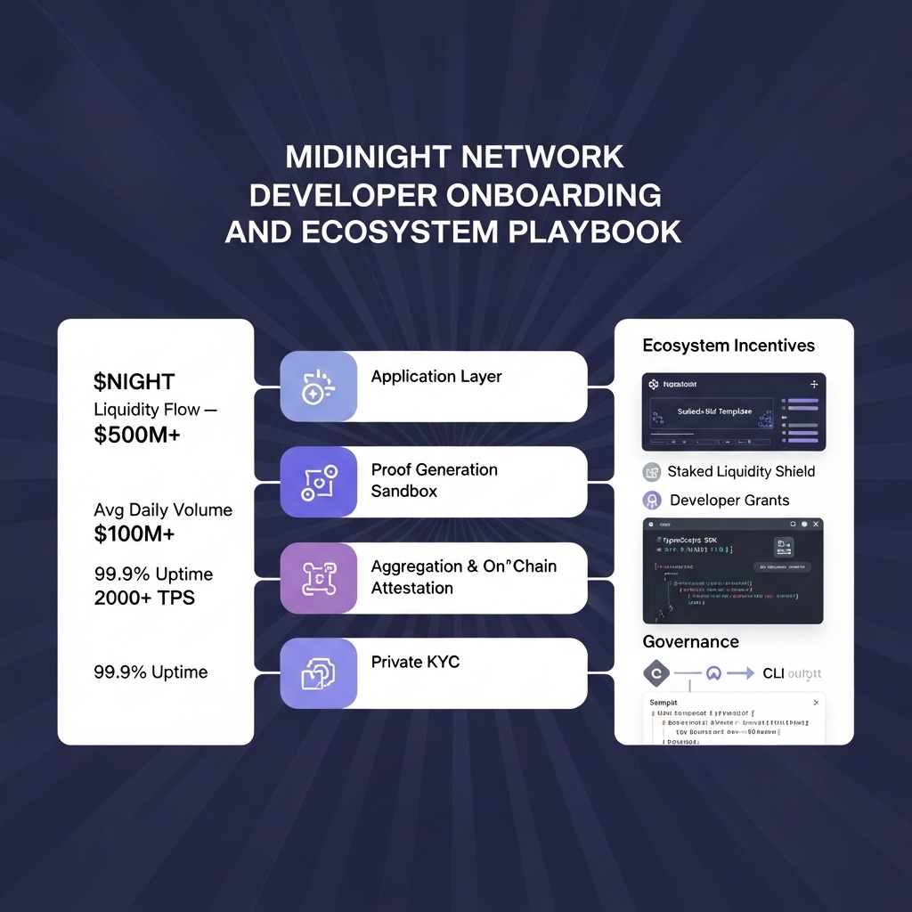 Midnight Network provides a pragmatic, developer‑first path to building privacy‑preserving Web3 applications that scale. The platform’s core focus is on reducing integration friction: clear SDKs, reference architectures, and predictable cost models let engineering teams move from prototype to production without cryptographic expertise. Midnight’s stack separates proof generation from on‑chain attestation, enabling local or off‑chain proof creation, batched aggregation, and compact on‑chain verification that minimizes gas exposure while preserving strong zero‑knowledge guarantees.