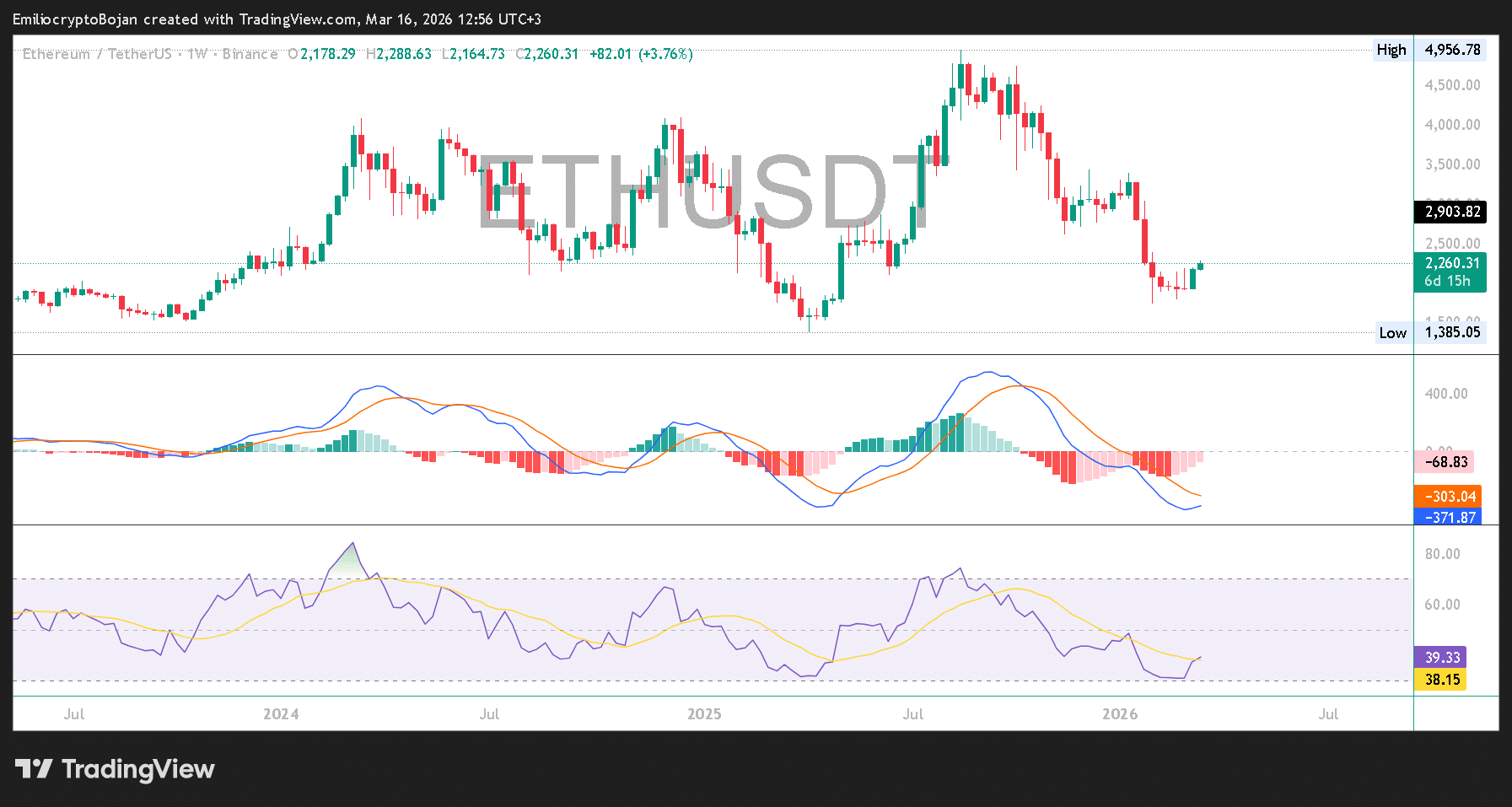 #Ethereum [$ETH ] followed with real force and finally gave bulls something solid to hold onto. ETH rose 13% to nearly $2,300 and printed its first green weekly candle after seven straight red weeks.