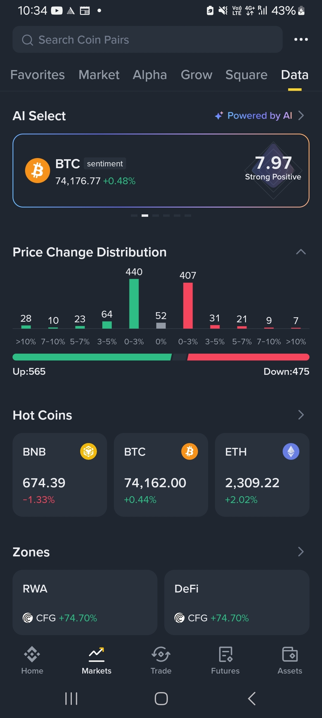 According to price change distribution. Market trends neutral or slightly bearish.