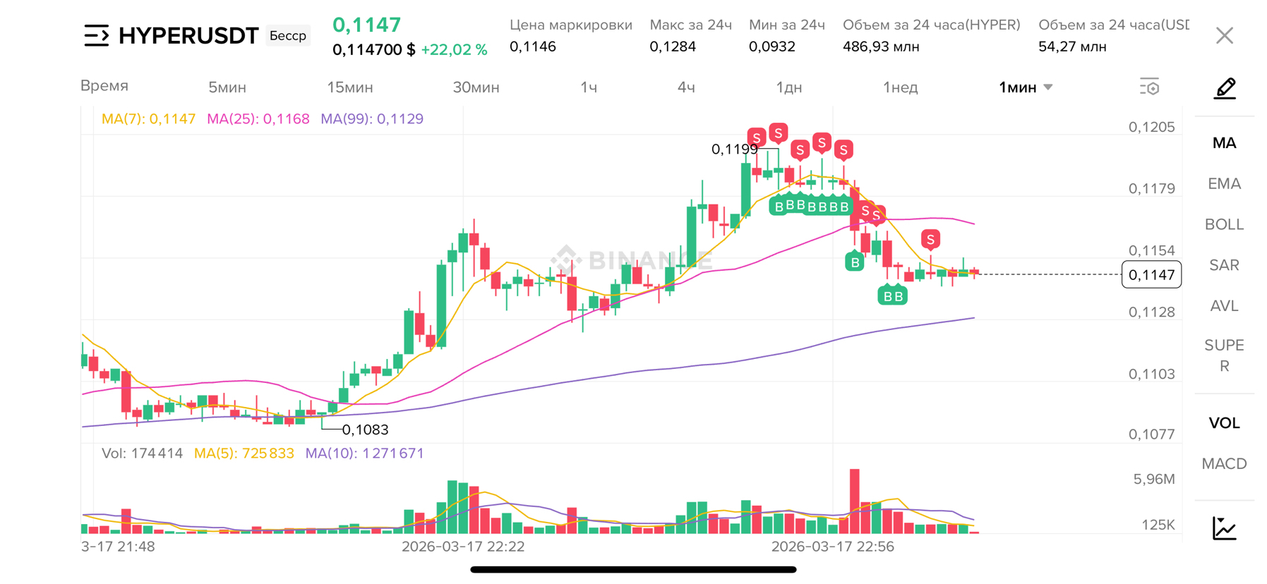 Sangat baik di akhir siaran langsung muncul koin menarik #HYPER di mana saya masuk dengan margin tinggi (10% dari setoran) biasanya saya sangat jarang melakukannya.