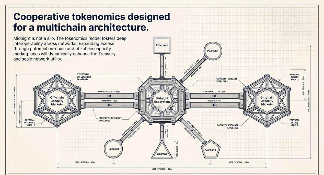 Midnight’s tokenomics model is designed to support a multichain architecture, fostering interoperability across various networks.