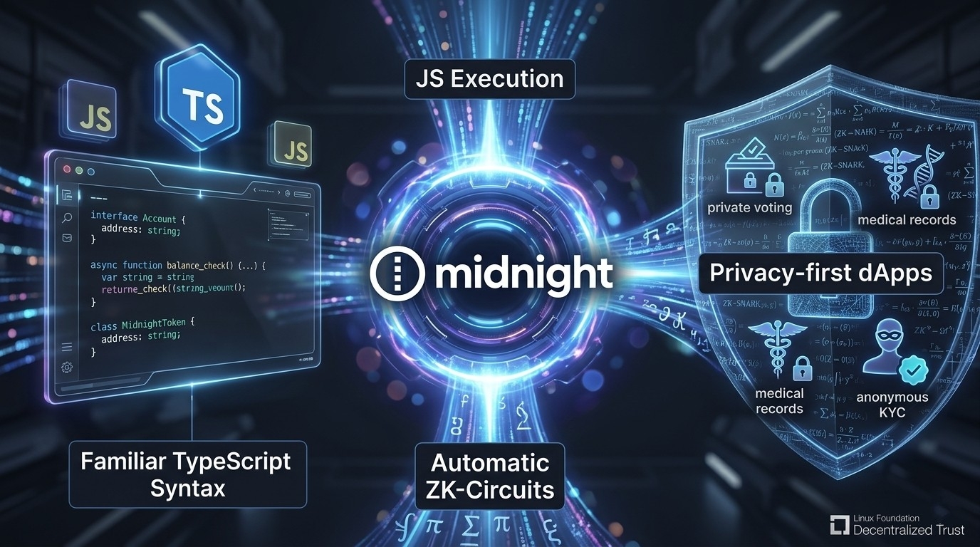 У жовтні 2025-го відбулося щось важливе для довгострокової довіри до Compact. Мова стала open-source під патронажем Linux Foundation Decentralized Trust. Це не просто репозиторій на GitHub - це передача governance над компілятором незалежній організації, яка керує такими проєктами як Hyperledger, OpenSSL і десятки інших критичних інфраструктурних проєктів. Для Enterprise-клієнтів і розробників, які думають про довгострокове використання, це сигнал: технологія не залежить від виживання однієї компанії і не може бути закрита або змінена без прозорого процесу.