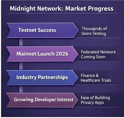 From a market perspective, timing also matters. Midnight is trending right now largely because it’s moving toward its federated mainnet launch in 2026, where actual production apps can go live. That transition from testnet experimentation to real usage is where many projects either prove themselves or fade out.