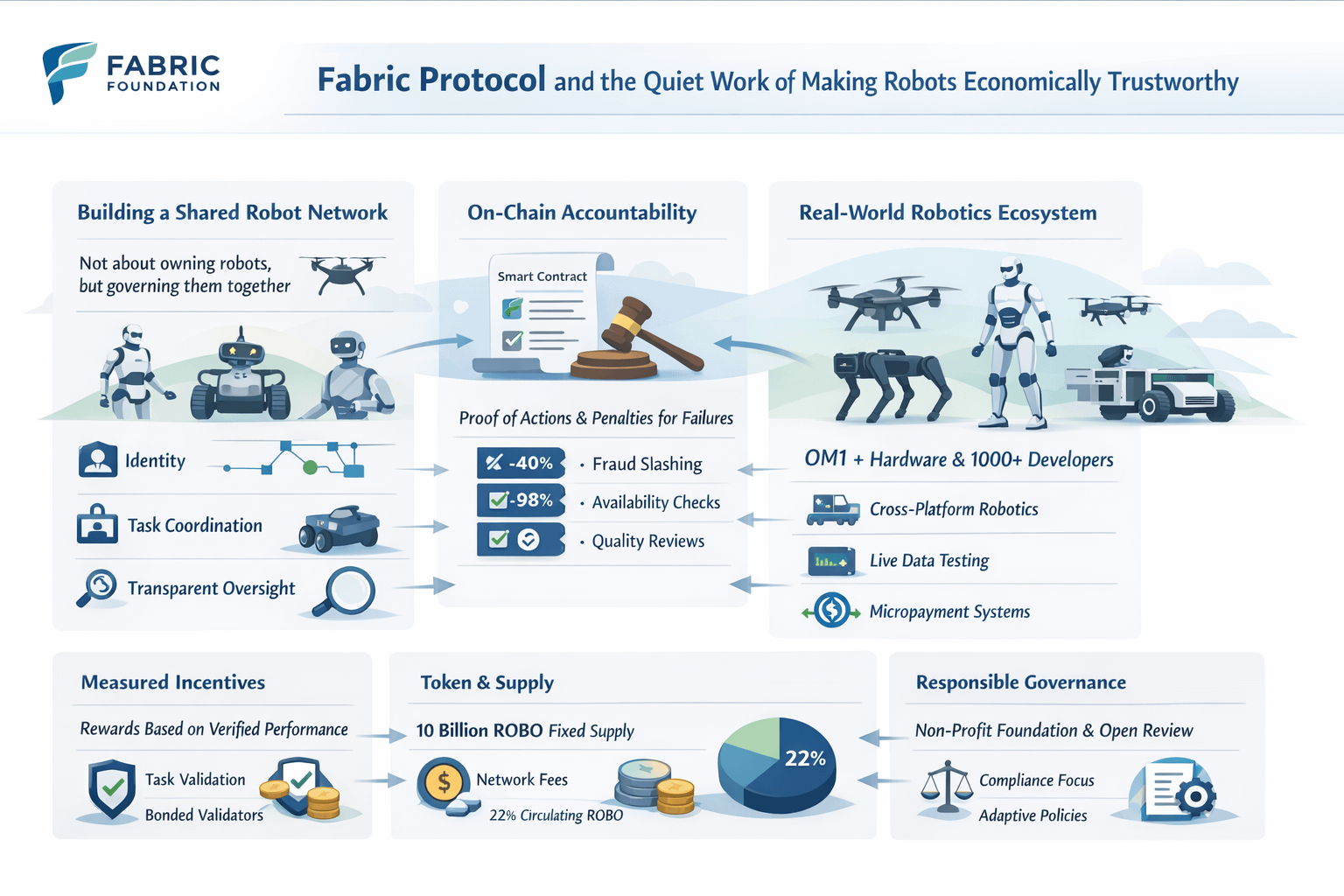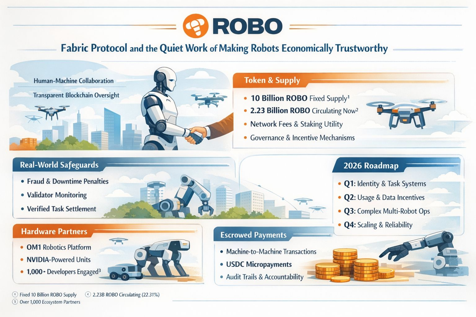 So when I look at Fabric now, with its March updates, its public-market token data, its published supply structure, its early rollout plan, and its growing attempt to connect robotics software with accountable economic rails, I do not see a finished answer. I see a protocol trying to prepare for the moment when robots stop being isolated products and start behaving like participants in a shared economic environment. That is a heavier problem than most people realize. It means dealing with broken sensors, disputed records, opportunistic operators, temporary outages, legal uncertainty, uneven hardware quality, emotional fear from users, and the very human need to know that someone can still say no when the machine gets it wrong. Fabric has not solved all of that. At least Fabric is trying to face those hard questions instead of pretending they do not exist.