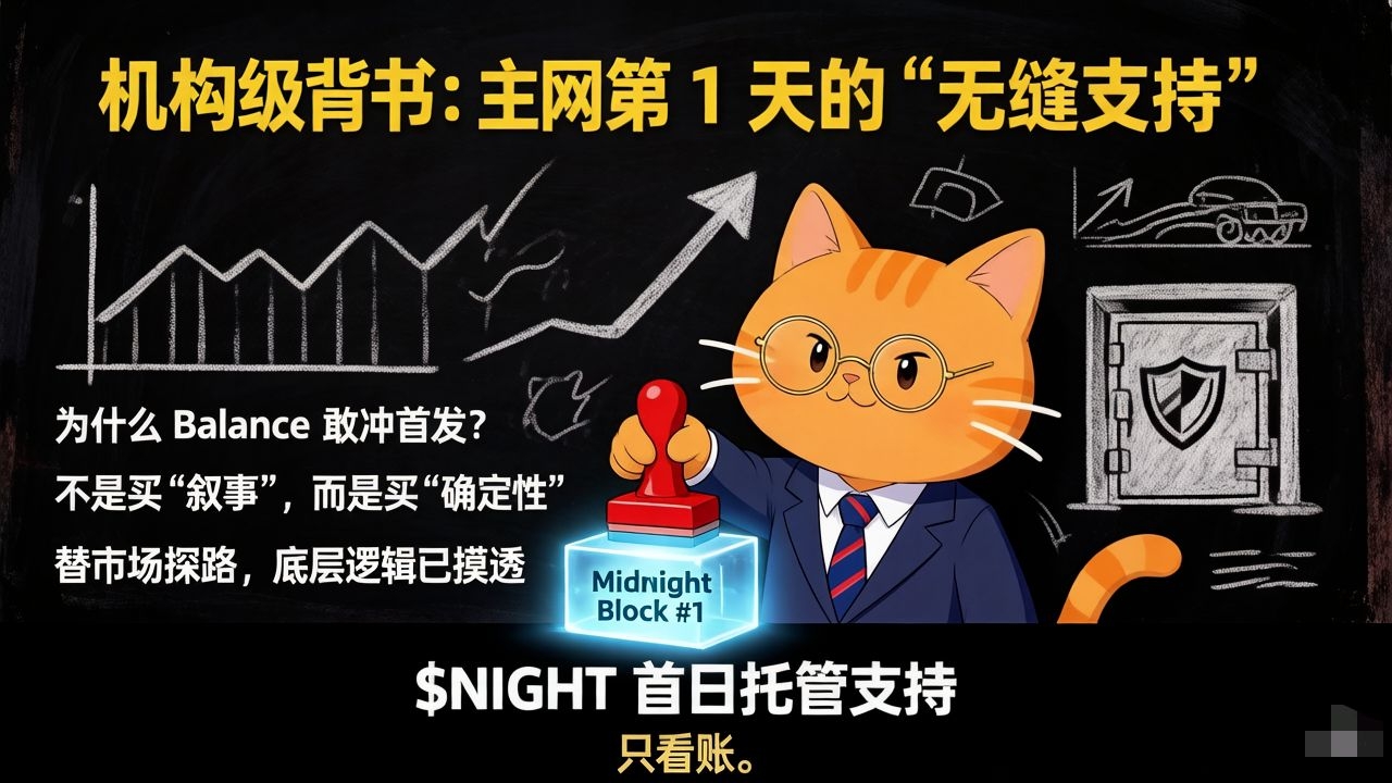 Kemarin saya melihat pengumuman Balance—perusahaan penyimpanan aset digital kelas institusi yang sudah lama berdiri, berjanji untuk segera mendukung transfer @MidnightNetwork saat blok pertama di mainnet dihasilkan. Kalimat ini mungkin tidak ada artinya bagi orang luar, tetapi bagi yang mengerti, mereka tahu nilai sebenarnya di mana.
