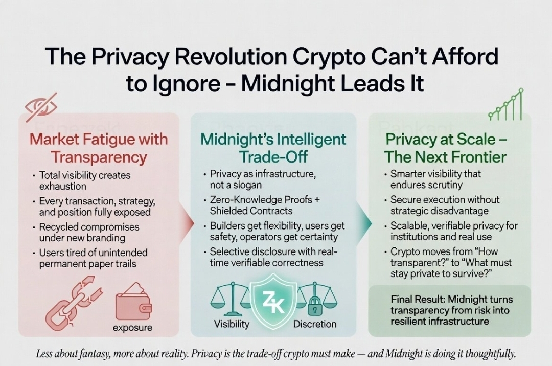 That tension, that quiet negotiation between trust, visibility, and discretion, is why I keep coming back. Not for the spectacle, not for the hype, but because it is pointing towards something true. The next iteration of blockchain technology can and will have to embrace the limits of transparency, and Midnight is trying to work within these limits, intentionally, thoughtfully, and with urgency.