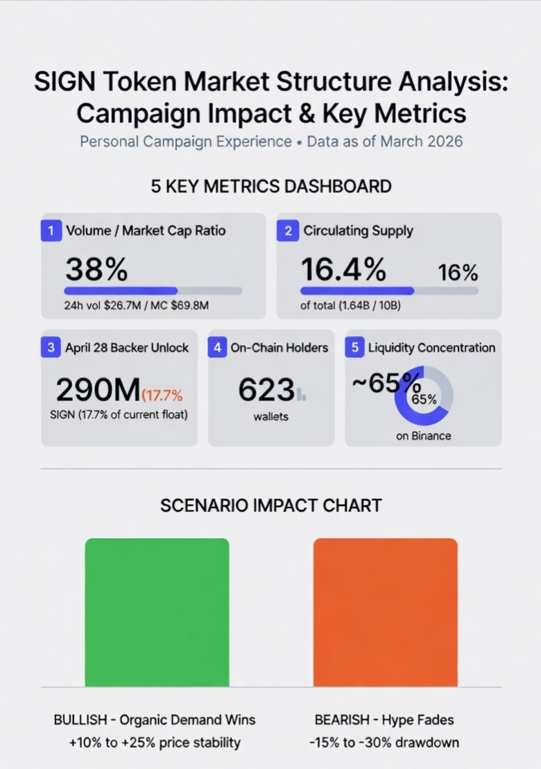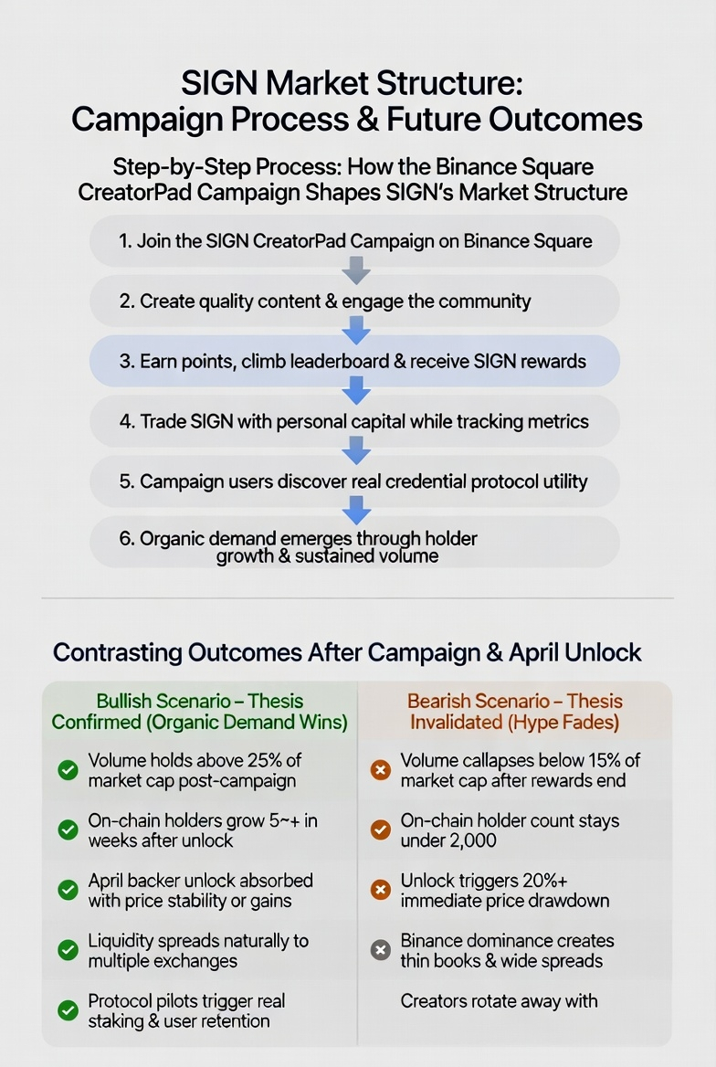 I’ve been in the SIGN campaign on Binance Square for a couple of weeks now, posting threads, replying to comments, and actually trading the token with my own money instead of just farming points. It’s given me a front-row view that feels different from the usual Twitter noise or quick chart glances. Most people see the price bouncing around $0.042 and the volume spiking and assume it’s pure campaign hype that’ll fade. What I’ve come to believe and what keeps me holding through the noise is something quieter: the campaign isn’t just inflating short-term liquidity; it’s forcing a rare alignment between reward chasers and real credential users, turning temporary volume into the early scaffolding of organic demand that the market hasn’t priced in yet.