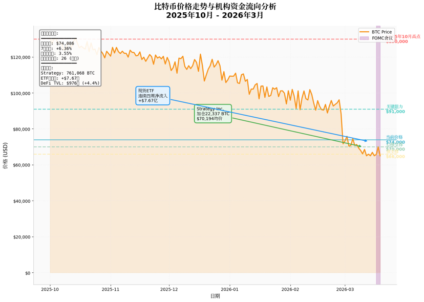 Yang lebih menarik adalah akumulasi berkelanjutan dari Strategy Inc. (dulu MicroStrategy). Perusahaan ini membeli 22.337 Bitcoin dengan harga rata-rata 70.194 dolar antara 9 hingga 15 Maret, dengan total biaya sekitar 1,57 miliar dolar, sehingga total kepemilikan mereka mencapai 761.068 BTC, dengan harga pokok rata-rata 75.696 dolar. Tindakan ini memiliki makna sinyal ganda: pertama, mengonfirmasi adanya dukungan pembelian tingkat perusahaan yang kuat di sekitar 70.000 dolar; kedua, menunjukkan bahwa meskipun dalam fase penyesuaian harga, logika penempatan jangka panjang institusi belum tergoyahkan.