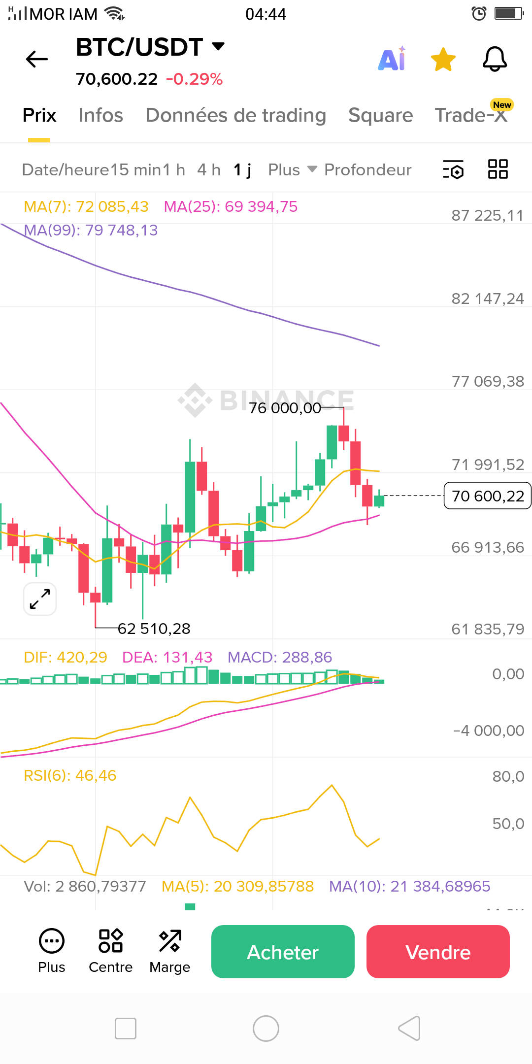 · Bullish Scenario: Breaking $72,100** with volume → target $75,000, then $78,000 (MA99). A daily close above **$72,500 would confirm the trend.