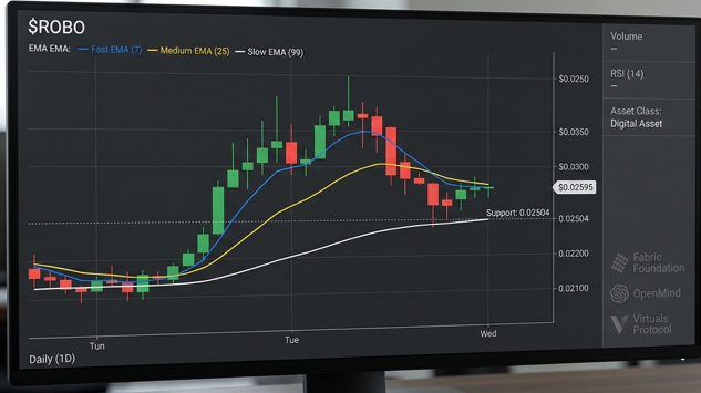 Sekarang $ROBO diperdagangkan seharga $0,02595. Dalam sehari minus 2,08%, tetapi yang lebih penting adalah: dinamika mingguan adalah -38,24%. Ya, ini menyakitkan bagi mereka yang masuk lebih tinggi. Tetapi pergerakan seperti ini dalam kripto - bukan hal yang aneh. Pertanyaannya adalah apa yang terjadi di balik layar.