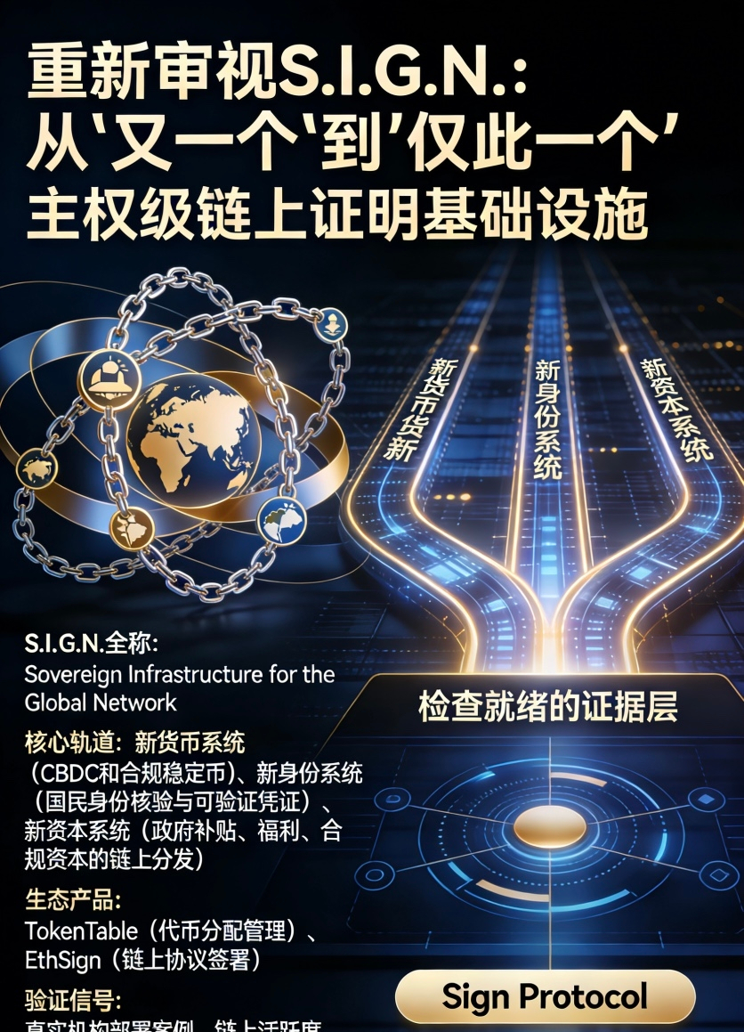 在我看来,$SIGN 是一张押注“主权级链上证明基础设施将成为全球数字化治理刚需”的长期门票。如果你相信未来十年全球主权数字化进程将加速,且这一进程需要一套开放、可审计、跨链互通的证明基础设施,那么这条路的方向是正确的。我关注的验证信号只有三个:是否有真实可公开的机构级部署案例;Sign Protocol的链上活跃度能否在活动结束后维持;TokenTable能否承接到真实的机构分发需求。这三个信号若出现正向变化,逻辑便站得住脚;否则,再好的架构也只是白皮书里的故事。#Sign地缘政治基建 @SignOfficial