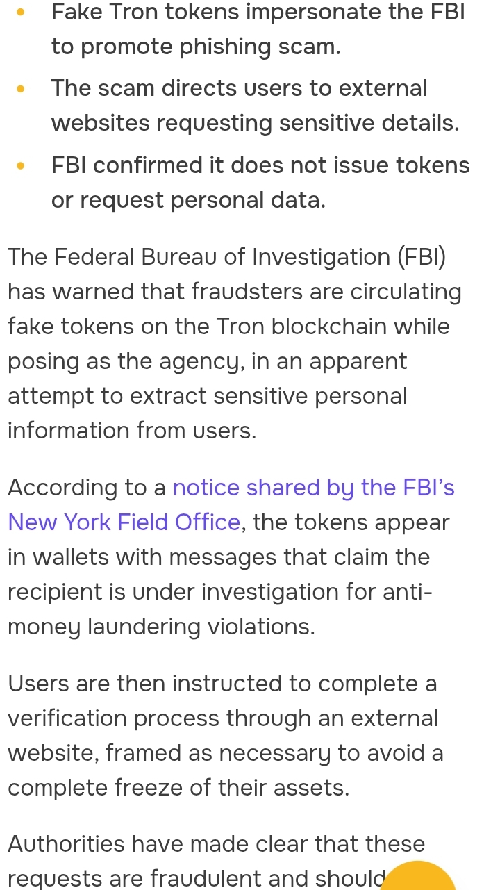 FBI memperingatkan tentang token Tron palsu dalam skema phishing kripto baru.