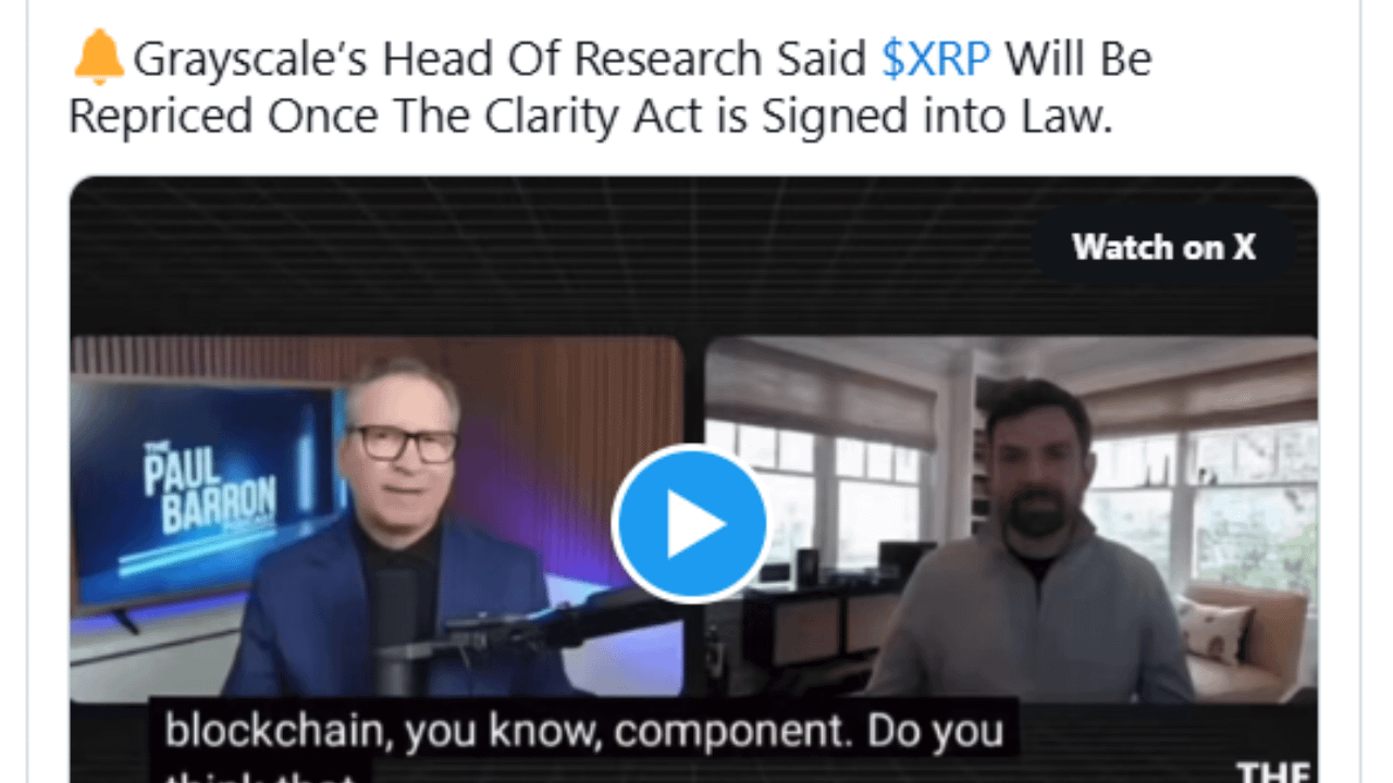 Menurut Crypto Dyl News, diskusi podcast terbaru menampilkan Zach Pandl, yang menjelaskan bagaimana undang-undang AS yang akan datang dapat mempengaruhi penilaian XRP. Pernyataannya, yang disampaikan selama wawancara Maret 2026 di Paul Barron Podcast, berfokus pada dampak yang diharapkan dari Clarity Act terhadap struktur pasar dan dinamika harga.
