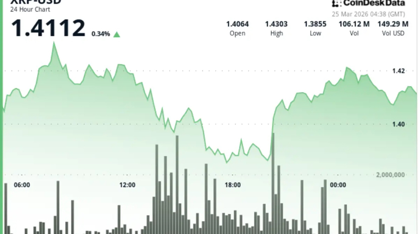 XRP diperdagangkan dalam kisaran sempit sekitar $1,41, sementara pembeli melindungi dukungan sekitar $1,38, dan penjual membatasi kenaikan sekitar $1,42.