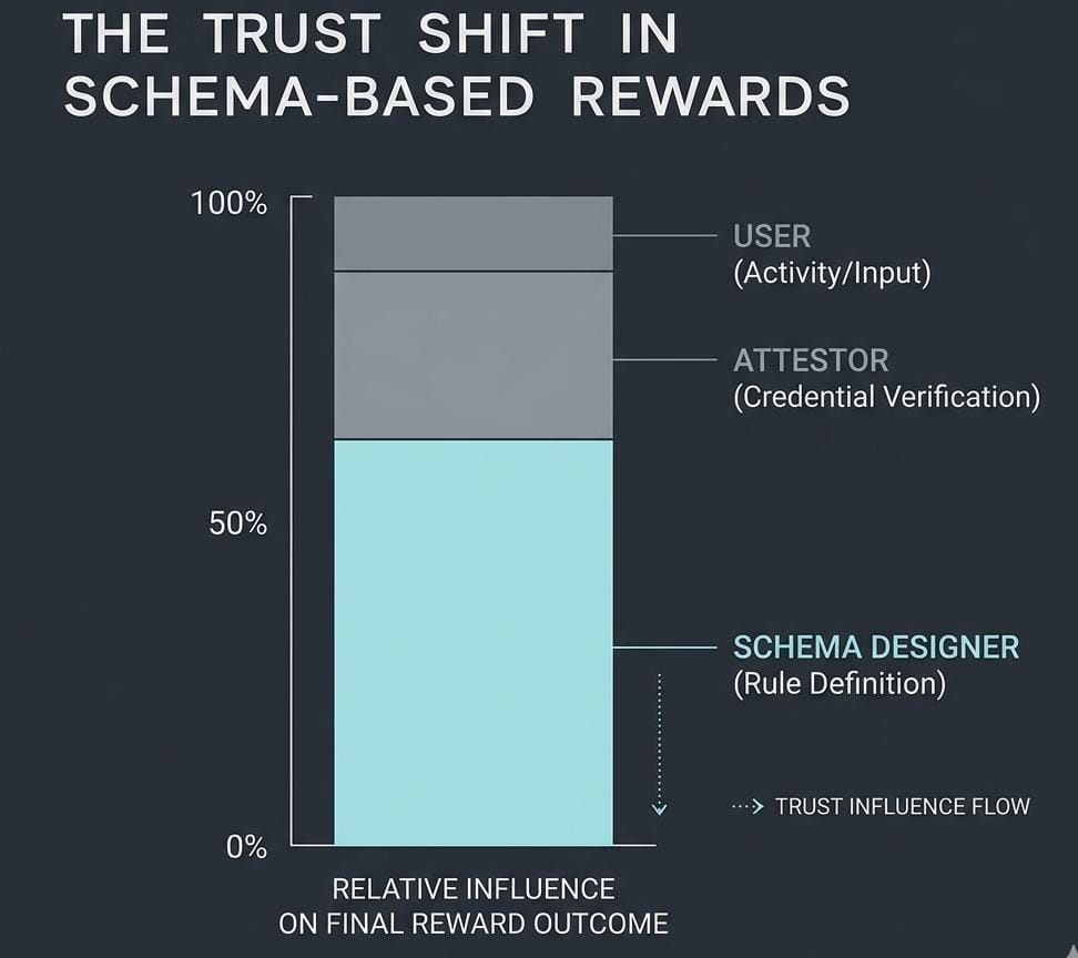 Small choices inside a schema change outcomes more than people realize. If a schema values participation then presence becomes valuable. If it values on-chain actions then interaction volume starts to matter. Same system but completely different winners. This is where bias enters.