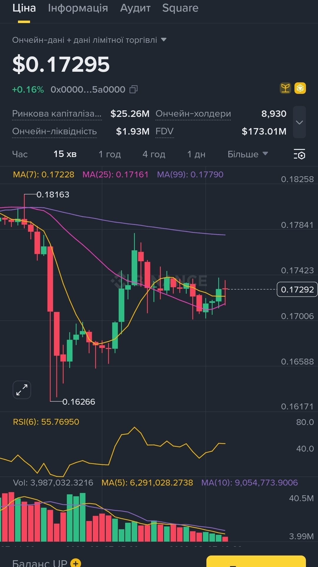 Саме зараз ми бачимо спробу стабілізації ціни $UP після значного падіння з рівня 0.1816. Наразі актив торгується по 0.1729.
