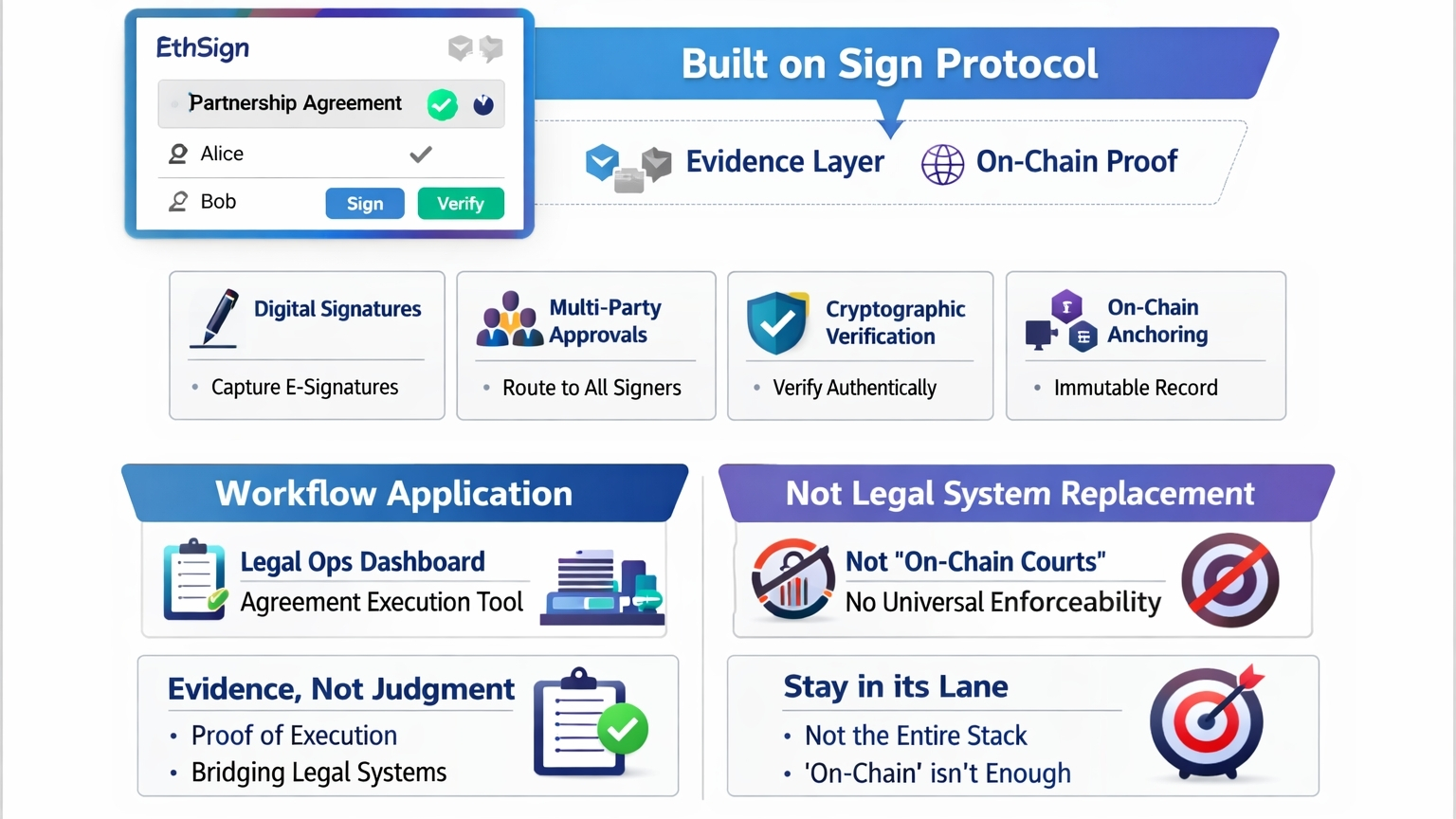 EthSign can make agreement execution more verifiable. It cannot magically flatten legal variance across jurisdictions. It can provide a cryptographic interface for legal systems, as the docs say. But bridging is not replacing. Evidence is not judgment. Proof of execution is not universal legal certainty.
