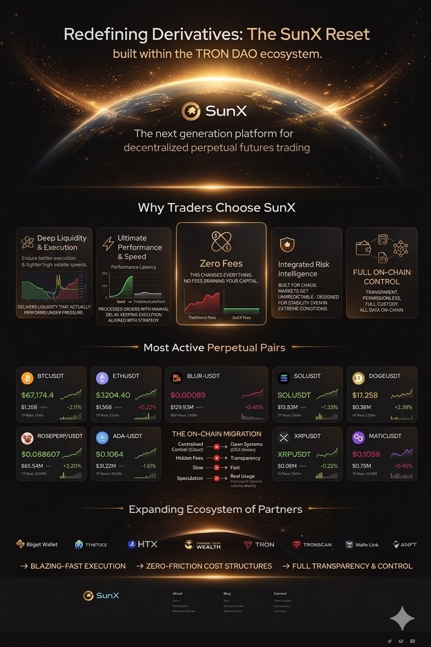 Built within the rapidly expanding TRON DAO, SunX is redefining what traders should expect from a derivatives platform โ not incremental improvements, but a complete transformation of the trading experience.