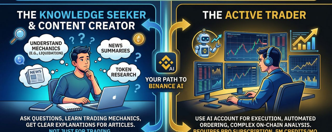 Phần lớn nội dung về Binance AI Pro đang nói với trader. Tôi hiểu tại sao, vì tính năng đặt lệnh qua AI Account là phần mới nhất và dễ thấy nhất. Nhưng có một nhóm người đang bỏ qua công cụ này vì nghĩ nó chỉ dành cho người giao dịch thường xuyên.