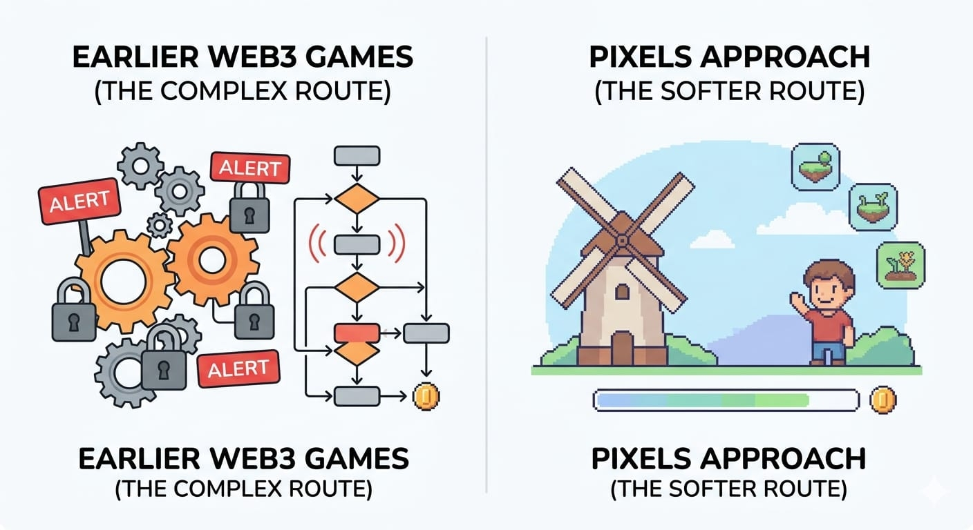 The problem before projects like Pixels was not just bad onboarding or clunky wallets. It was that too many Web3 games asked players to care about structure before they cared about atmosphere. That order matters. In normal games, you usually get attached to the feeling first. Then later, maybe, you start caring about progression, status, items, or whatever else sits underneath.