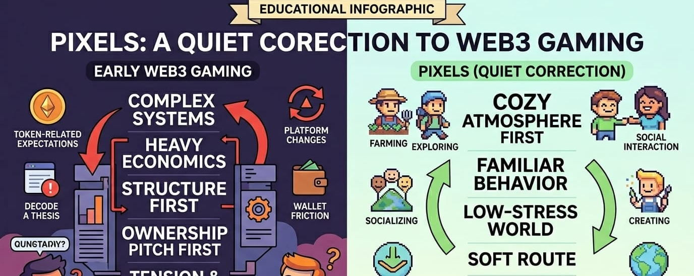 Pixels probably works best for a middle type of user. Someone who likes online worlds, likes gradual progress, maybe likes the idea of owning digital stuff, but does not want the full weight of Web3 culture dumped on their head. That audience is real. Honestly, it might be more real than the giant “mass adoption” story people keep repeating.